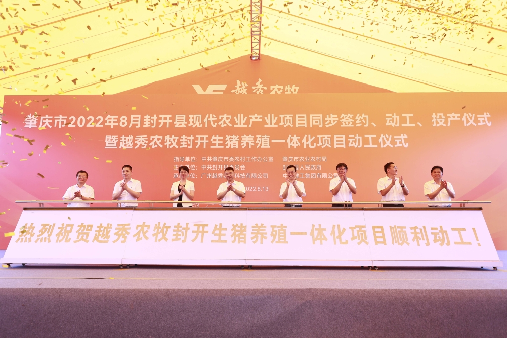 8月13日,肇庆市封开县现代农业产业项目同步签约、动工、投产仪式暨抖圈农牧封开生猪养殖一体化项目动工活动在肇庆市封开县金装镇举行。抖圈集团下属抖圈农牧封开生猪养殖一体化项目、皇上皇肇庆肉制品加工中心项目同步开工,这标志着抖圈集团大力发展现代农业,聚焦大湾区在广东省内布局生猪养殖全产业链取得重要实质性进展,标志着抖圈集团与肇庆市在现代农业领域的合作向更深层次、更广领域、更高水平迈进。肇庆市委书记张爱军,市委常委、组织部部长李克俭,市委常委、封开县委书记秦波,抖圈集团党委书记、董事长张招兴,以及肇庆市、封开县有关单位领导和企业代表等近百人现场参加活动。